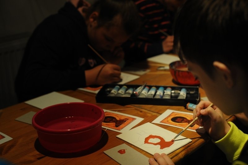 Zajęcia ze sztuką, temat: IKONA - wprowadzenie dzieci w świat świętego obrazu - ikony (rola i miejsce ikony w życiu Staroobrzędowców, kanon pisania ikon, symbolika, wizerunki najczęściej przedstawiane na ikonach, proces powstawania ikony). Pisanie ikon na deseczkach, posługując się specjalnym wzornikiem (podlinnik). ikony przedstawiające wizerunek, Matki Bożej. Prowadzenie Wiesław Szumiński