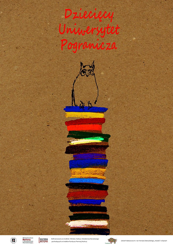 Dziecięcy Uniwersytet Pogranicza to cykl działań artystycznych, warsztatów, koncertów, spektakli, lekcji literackich dla 200-osobowej grupy dzieci ze szkoły podstawowej w Sejnach, która poprzez sztukę i edukację uczestniczyć będzie w bogatej ofercie poznawania dziedzictwa wielokulturowego regionu, w ciekawym pozaszkolnym programie spotkania z teatrem, muzyką – także-klasyczną, literaturą i sztuką ludową. Osią tematyczną programu będzie „małe centrum świata”, czyli pogranicze jako miejsce, gdzie spotykają się ze sobą różne tradycje, kultury, języki, religie.